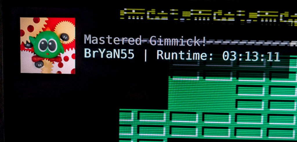 Il y a des jeux auxquels j’ai joué souvent, mais que je n’ai jamais réussi à terminer sans mourir. La plupart du temps, je ne m’impose pas non plus ce défi, surtout dans un jeu comme Gimmick! qui, bien que court, possède des contrôles vifs et nerveux avec une physique quelque peu glissante. C’est super le fun, mais les chances de mourir bêtement et subitement sont élevées, au moindre faux pas. Pour cette raison, je n’ai jamais eu envie de pratiquer le 1LC pour ce dernier. Il y a un succès sur RetroAchievements pour le terminer sans mourir, mais j’avais décidé de ne pas le tenter. J’ai toujours aimé jouer à Gimmick! pour relaxer et apprécier son petit côté magique et féérique. D’ailleurs, ces temps-ci, je l’ai refait sur PS5 et Xbox, ainsi que sur Evercade, qui reste à mon avis le meilleur port de ce jeu. Bref, tout ça a fait en sorte que je me débrouillais de mieux en mieux avec le jeu, découvrant de nouvelles petites stratégies ici et là.