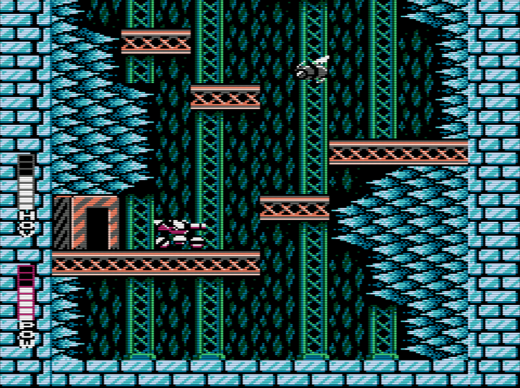 La septième pièce offre un peu de répit. Utilisez vos missiles à tête chercheuse afin de tuer facilement les ennemis et récupérer des P si votre énergie est basse. Encore une fois, prenez votre temps. Une fois en bas, prenez la porte de gauche.