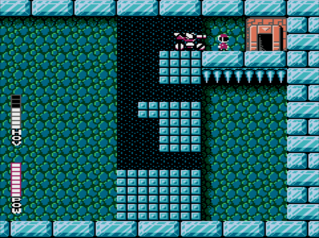 Premièrement, la chose la plus importante, c’est d’avoir un maximum de Hover pour Sophia avant de s’aventurer plus loin. Si ce n’est pas le cas, il est très facile d’en ramasser à l’entrée du monde 8 : les petits vers rouges en laissent parfois tomber. Ils sont très faciles à tuer et à éviter si vous utilisez ma stratégie dans la vidéo ci-dessus, qui consiste à longer les murs, les tuer, sortir, puis revenir. Une fois que votre Hover est au maximum (et votre énergie), prenez la seule porte à gauche.