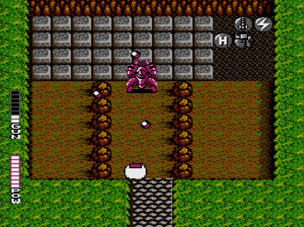 C’est rarement une bonne idée de jouer avec Jason hors du tank. Par contre, à certains endroits, et surtout dans le monde 8, ça peut s’avérer bien utile (on y reviendra). Tous les dommages que Jason prend sont soignés dès qu’il revient dans le tank, donc parfois, c’est bon d’en abuser un peu. Un bon exemple, c’est au début du deuxième monde, je sors avec Jason pour éliminer facilement les deux vers qui arrivent vers nous, plutôt que d’utiliser des armes spéciales avec Sophia. D’ailleurs, si vous voulez que le 8e monde soit plus facile, conservez vos missiles à tête chercheuse (Homing Missiles), ne les gaspillez pas inutilement.